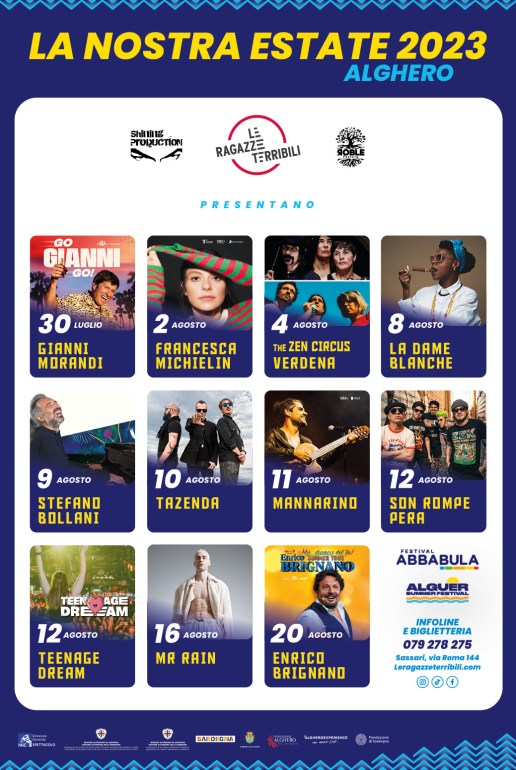 Per l’estate 2024, si profila un calendario estivo ricchissimo di ospiti ed eventi, che spazia tra Sassari e Alghero. Tra i grandi nomi, Gianni Morandi e Francesca Michelin, Calcutta e perfino Angelina Mango, vincitrice dell’edizione dell’anno corrente del Festival della Musica Italiana di Sanremo. “Quest’anno sembrava iniziato male, poi è andato in crescendo. Avremo artisti come Calcutta e Angelina Mango, con una serie di serate che si annunciano già piuttosto scoppiettanti.” le parole della Presidente Barbara Vargiu.
