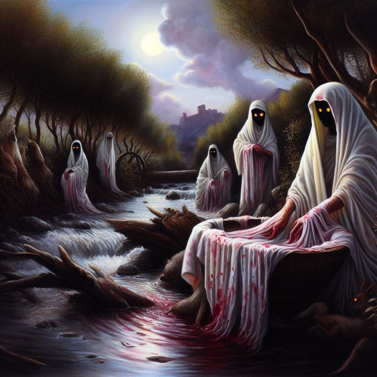 Immaginiamo di passeggiare in una foresta, lungo un ruscello nelle ore notturne e di vedere queste figure femminili che sciacquano i loro panni. Nel frattempo cantano una ninnananna molto triste. Sono delle anime un po’ da temere e un po’ da rispettare. Se qualcuno vede una di loro durante la notte e inizia a parlarci, per quest’ultima, la condanna si prolunga e l’anima in questione sarà condannata a passare altri 7 anni sulla Terra.